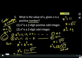5. What is the value of x, given x is a positive number? (1) x^3 is a 2-digit positive odd integer. (2) x^4 is a 2-digit odd integer.