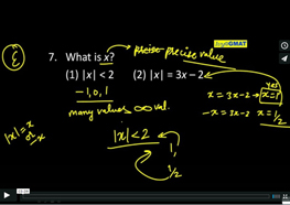 7. What is x? (1) |x| < 2 (2) |x| = 3x – 2