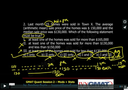 1. Last month 15 homes were sold in Town X. The average (arithmetic mean) sale price of the homes was $ 150,000 and the median sale price was $130,000. Which of the following statement must be true? I. at least one of the homes was sold for more than $165,000 II. at least one of the homes was sold for more than $130,000 and less than $150,000 III. at least one of the homes was sold for less than $130,000