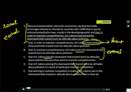 2. Many environmentalists, and some economists, say that free trade encourages industry to relocate to countries with ineffective or poorly enforced antipollution laws, mostly in the developing world, and that, in order to maintain competitiveness, rich nations have joined this downward slide toward more lax attitudes about pollution.